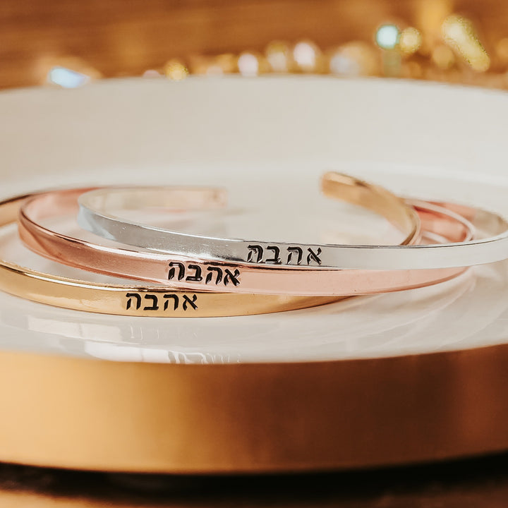• Your AHAVA bracelet will be stamped in HEBREW in the center OR edge of the bracelet