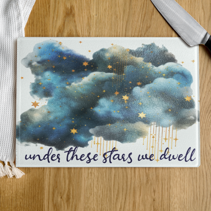Bring a little starlight to your Sukkot table with this celestial glass cutting board, hand-designed with the phrase Under These Stars We Dwell. Whether you use it to serve challah, display fruit, or simply as a decorative accent in your sukkah, it’s a beautiful reminder of the season.